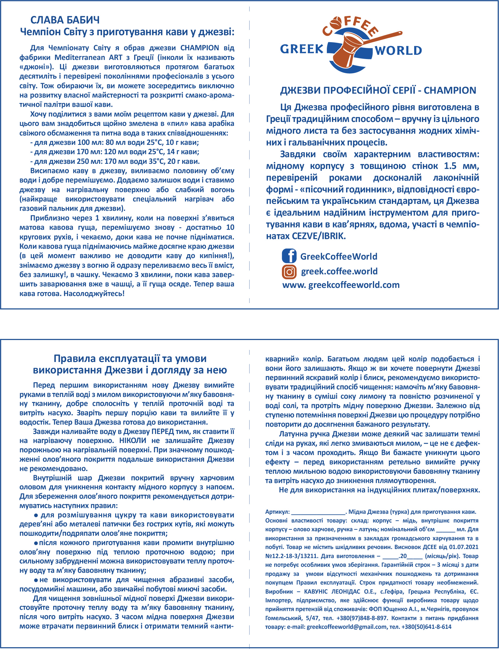 Ми з 2016 року є торговим партнером Mediterranean Art і розвиваємо лінійку джезв CHAMPION. Вони виготовляються з урахуваннням вимог професійних користувачів та неодноразово ставали вибором переможців Чемпіонатів Cezve/Ibrik.